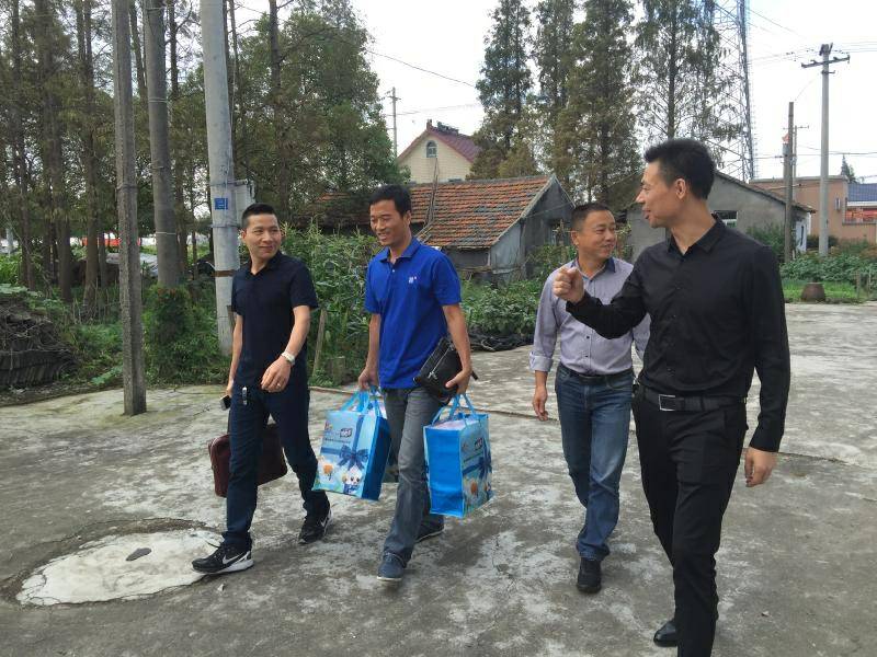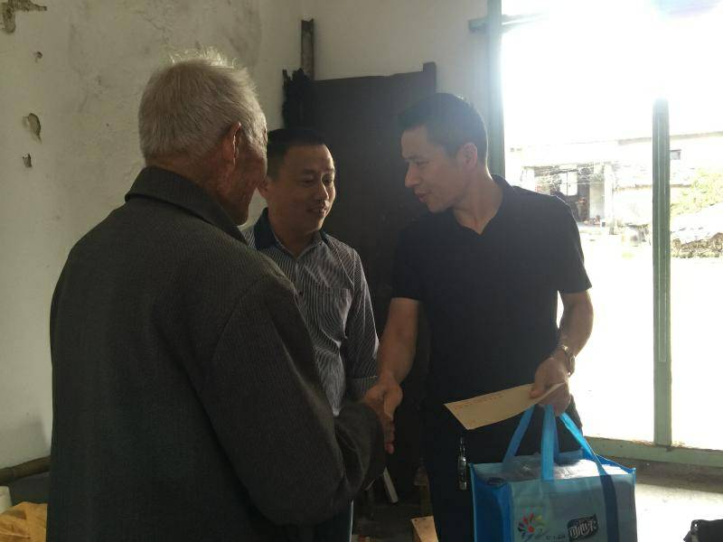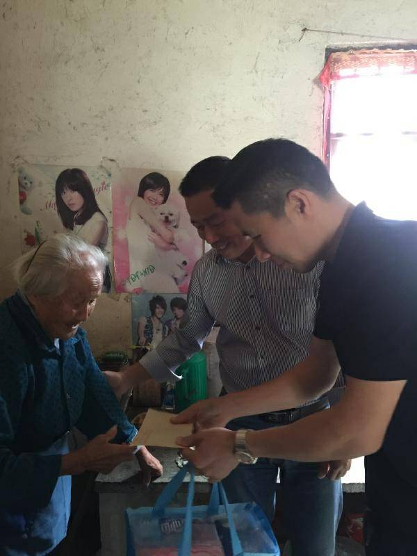 重阳节浙江青岛鸿飞药品研发有限公司纸业陈少林董事长、生产部经理邵忠华等企业高层前往结对村看望困难老人